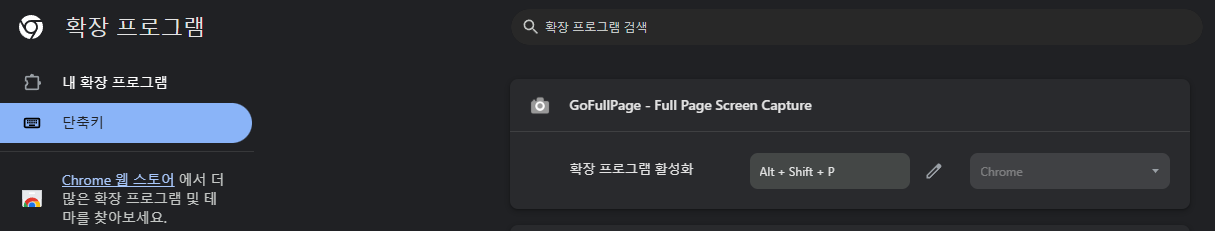 GoFullPage는 단축키(Alt + Shift + P)를 지원해 더 빠르게 캡처할 수 있습니다. 자주 사용하신다면 단축키를 활용해 보세요.