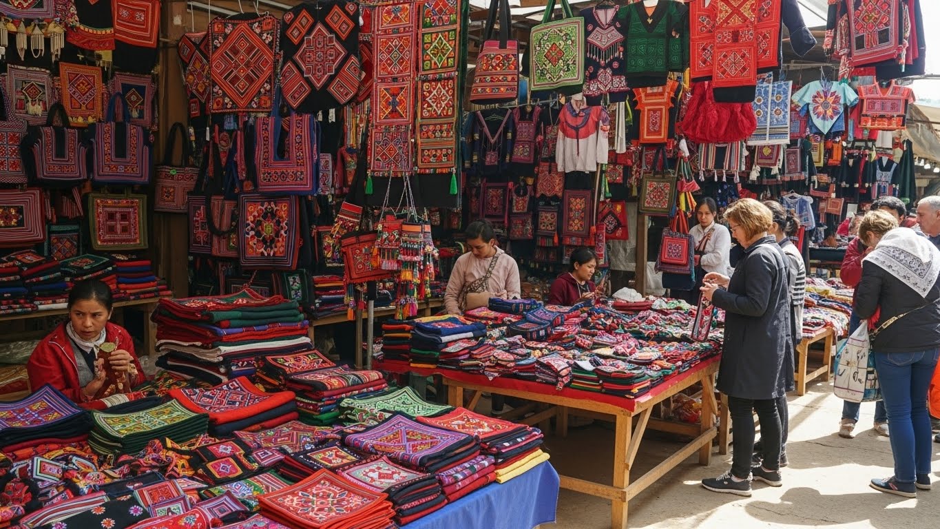 몽족의 화려한 자수를 활용한 파우치·가방·지갑 등이 많은 여행자에게 사랑받습니다. 색감이 독특하고 패턴도 다양해 독창적인 디자인을 선호하시는 분들께 적합합니다.