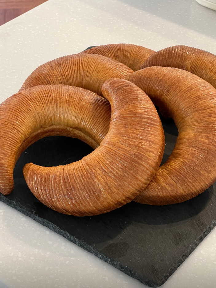 - 만 겹 크루아상: 5,800원 이곳의 시그니처 메뉴로, '생활의 달인'에서 강조된 제품입니다. 바닐라 타히티 크림을 추가하면 더 풍부한 맛을 즐길 수 있으며, 초승달 모양의 독특한 형태가 특징입니다. 겉은 파이처럼 바삭하고 속은 슈처럼 부드러워, 한 입 베어 물 때마다 층층이 쌓인 결이 느껴집니다.