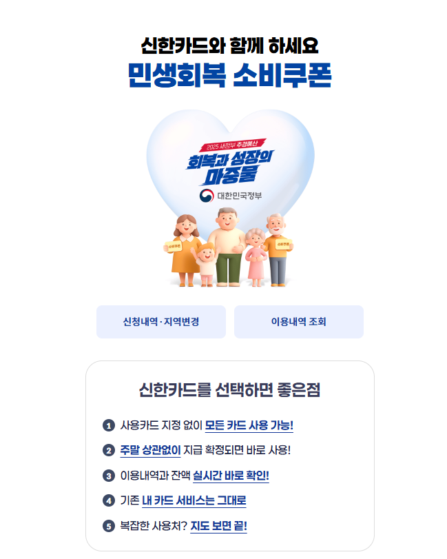 소비쿠폰은 현금 인출이 불가능하며, 신한카드를 통한 일반 결제로만 사용할 수 있습니다.