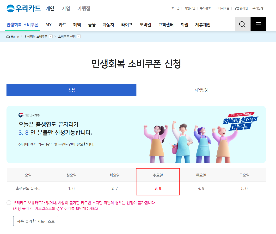 우리카드로 민생회복 소비쿠폰 신청 방법